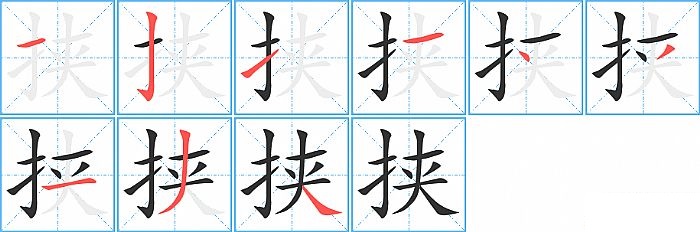 《挟》字的笔顺分步演示图(一笔一画写汉字)