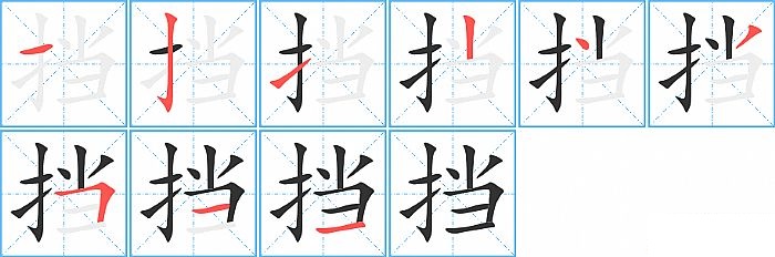 《挡》字的笔顺分步演示图(一笔一画写汉字)