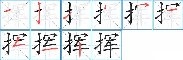 挥是左右结构,挥的部首是“扌”,部外笔画6画,总笔画9画,挥的笔画顺序是“横、竖钩、提、点、横撇/横钩、横、撇折、横、竖”。看看“挥”字什么意思 >>