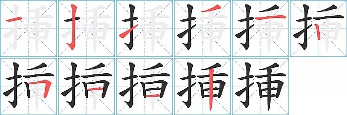 《挿》字的笔顺分步演示图(一笔一画写汉字)