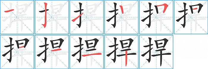 《捍》字的笔顺分步演示图(一笔一画写汉字)