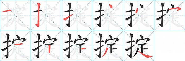 掟是左右结构,掟的部首是“扌”,部外笔画8画,总笔画11画,掟的笔画顺序是“横、竖钩、提、点、点、横撇/横钩、横、竖、横、撇、捺”。看看“掟”字什么意思 >>