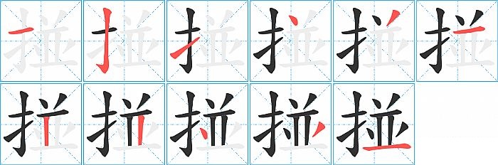 掽是左右结构,掽的部首是“扌”,部外笔画8画,总笔画11画,掽的笔画顺序是“横、竖钩、提、点、撇、横、竖、竖、点、撇、横”。看看“掽”字什么意思 >>