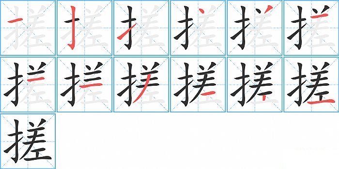 搓是左右结构,搓的部首是“扌”,部外笔画9画,总笔画12画,搓的笔画顺序是“横、竖钩、提、点、撇、横、横、横、撇、横、竖、横”。看看“搓”字什么意思 >>