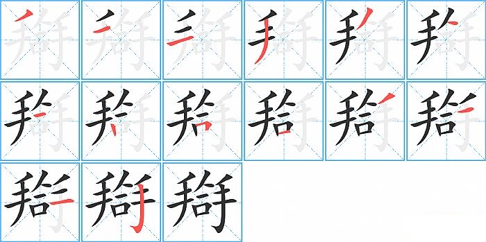 撇、横、横、撇、撇、点、横、竖、横折、横、撇、横、横、竖钩