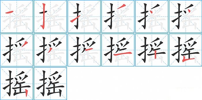 摇是左右结构,摇的部首是“扌”,部外笔画10画,总笔画13画,摇的笔画顺序是“横、竖钩、提、撇、点、点、撇、撇、横、横、竖、竖折/竖弯、竖”。看看“摇”字什么意思 >>