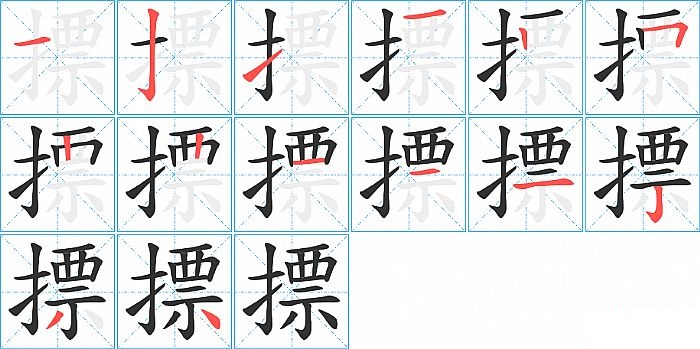 摽是左右结构,摽的部首是“扌”,部外笔画11画,总笔画14画,摽的笔画顺序是“横、竖钩、提、横、竖、横折、竖、竖、横、横、横、竖钩、撇、点”。看看“摽”字什么意思 >>