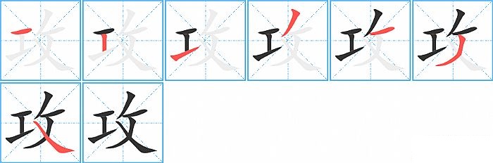 《攻》字的笔顺分步演示图(一笔一画写汉字)