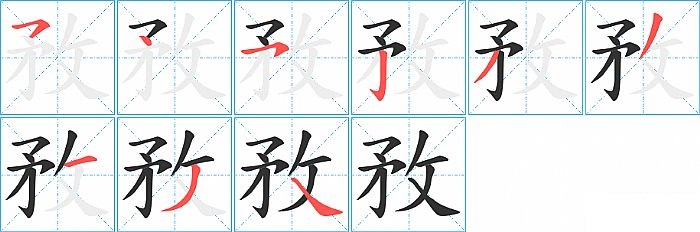 敄是左右结构,敄的部首是“攵”,部外笔画5画,总笔画9画,敄的笔画顺序是“横撇/横钩、点、横撇/横钩、竖钩、撇、撇、横、撇、捺”。看看“敄”字什么意思 >>