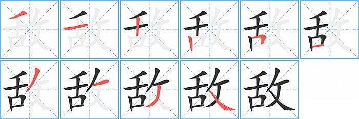 《敌》字的笔顺分步演示图(一笔一画写汉字)