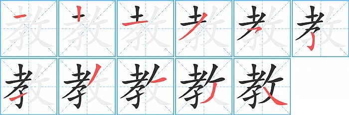 教是左右结构,教的部首是“攵”,部外笔画7画,总笔画11画,教的笔画顺序是“横、竖、横、撇、横撇/横钩、竖钩、提、撇、横、撇、捺”。看看“教”字什么意思 >>