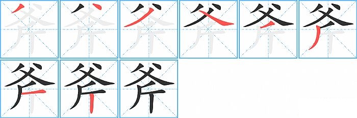 《斧》字的笔顺分步演示图(一笔一画写汉字)