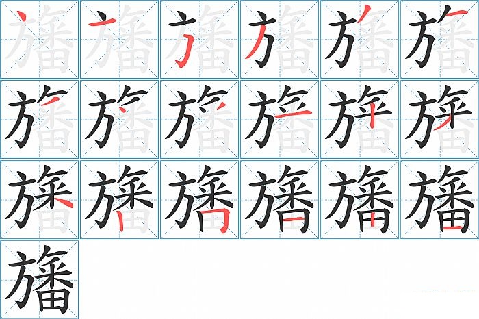 旛是左右结构,旛的部首是“方”,部外笔画14画,总笔画18画,旛的笔画顺序是“点、横、横折钩、撇、撇、横、撇、点、撇、横、竖、撇、捺、竖、横折、横、竖、横”。看看“旛”字什么意思 >>