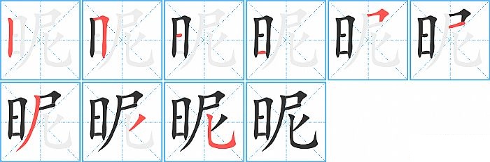 《昵》字的笔顺分步演示图(一笔一画写汉字)