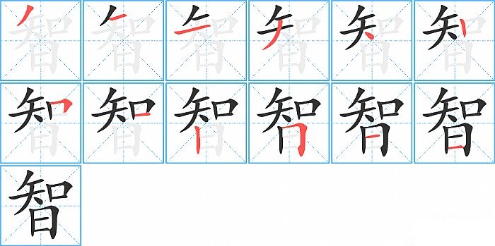 智是上下结构,智的部首是“日”,部外笔画8画,总笔画12画,智的笔画顺序是“撇、横、横、撇、点、竖、横折、横、竖、横折、横、横”。看看“智”字什么意思 >>