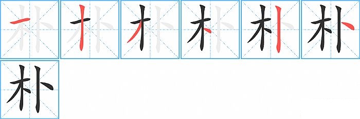 《朴》字的笔顺分步演示图(一笔一画写汉字)