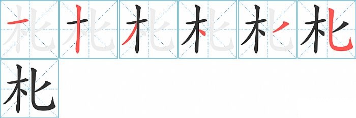 朼是左右结构,朼的部首是“木”,部外笔画2画,总笔画6画,朼的笔画顺序是“横、竖、撇、点、撇、竖弯钩”。