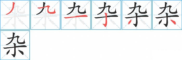 《杂》字的笔顺分步演示图(一笔一画写汉字)