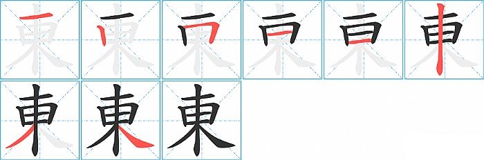 《東》字的笔顺分步演示图(一笔一画写汉字)