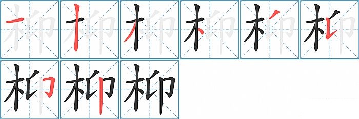 《枊》字的笔顺分步演示图(一笔一画写汉字)