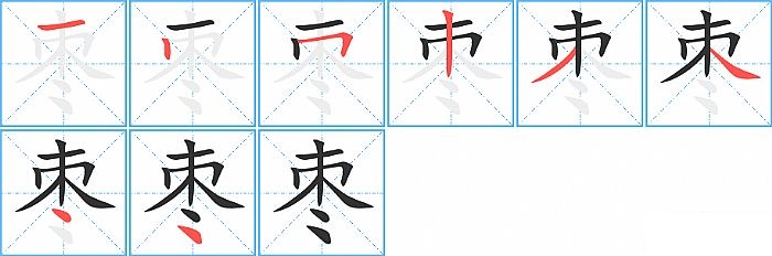 《枣》字的笔顺分步演示图(一笔一画写汉字)