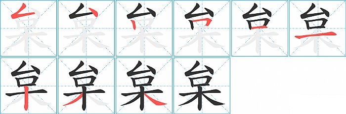 枲是上下结构,枲的部首是“木”,部外笔画5画,总笔画9画,枲的笔画顺序是“撇折、点、竖、横折、横、横、竖、撇、捺”。