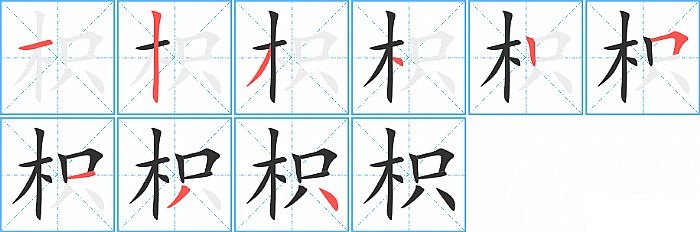 《枳》字的笔顺分步演示图(一笔一画写汉字)