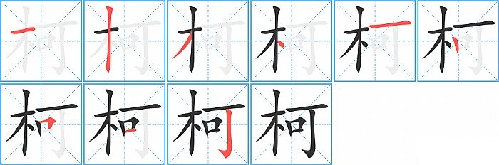《柯》字的笔顺分步演示图(一笔一画写汉字)