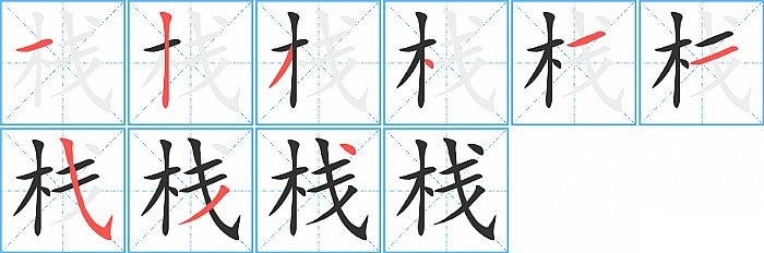 《栈》字的笔顺分步演示图(一笔一画写汉字)