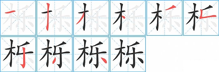 《栎》字的笔顺分步演示图(一笔一画写汉字)