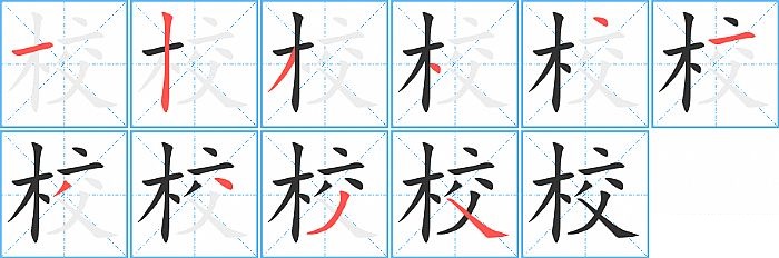 《校》字的笔顺分步演示图(一笔一画写汉字)