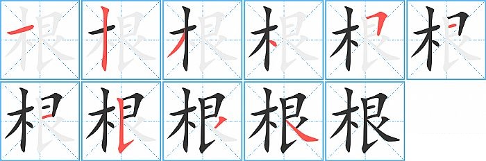 《根》字的笔顺分步演示图(一笔一画写汉字)