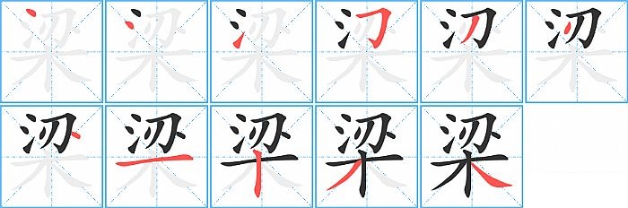 梁是上下结构,梁的部首是“木”,部外笔画7画,总笔画11画,梁的笔画顺序是“点、点、提、横折钩、撇、点、点、横、竖、撇、捺”。看看“梁”字什么意思 >>