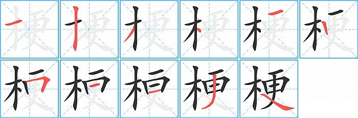 梗是左右结构,梗的部首是“木”,部外笔画7画,总笔画11画,梗的笔画顺序是“横、竖、撇、点、横、竖、横折、横、横、撇、捺”。看看“梗”字什么意思 >>
