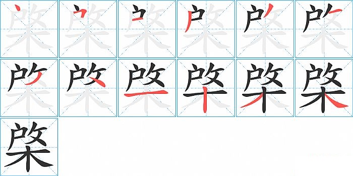 棨是上下结构,棨的部首是“木”,部外笔画8画,总笔画12画,棨的笔画顺序是“点、横折、横、撇、撇、横、撇、点、横、竖、撇、捺”。看看“棨”字什么意思 >>