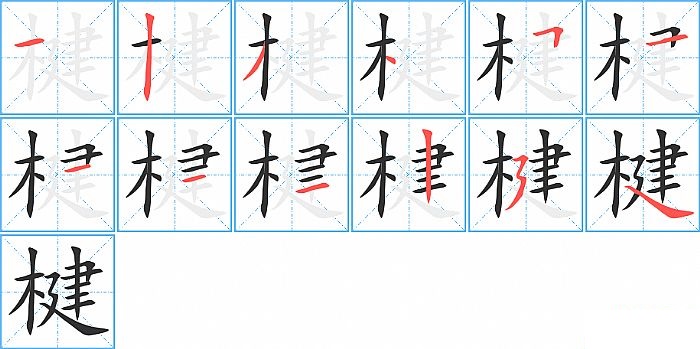 楗是左右结构,楗的部首是“木”,部外笔画8画,总笔画12画,楗的笔画顺序是“横、竖、撇、点、横折、横、横、横、横、竖、横折折撇、捺”。看看“楗”字什么意思 >>