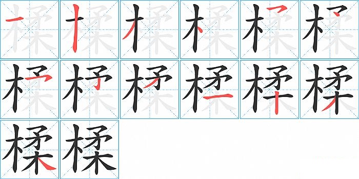 楺是左右结构,楺的部首是“木”,部外笔画9画,总笔画13画,楺的笔画顺序是“横、竖、撇、点、横撇/横钩、点、横撇/横钩、竖钩、撇、横、竖、撇、捺”。看看“楺”字什么意思 >>