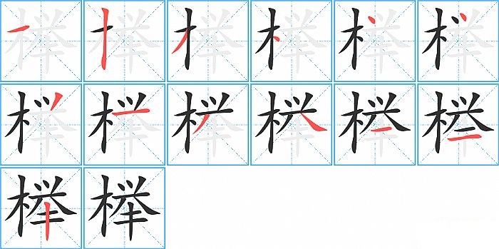 榉是左右结构,榉的部首是“木”,部外笔画9画,总笔画13画,榉的笔画顺序是“横、竖、撇、点、点、点、撇、横、撇、捺、横、横、竖”。看看“榉”字什么意思 >>