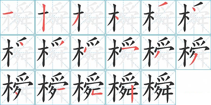 橓是左右结构,橓的部首是“木”,部外笔画12画,总笔画16画,橓的笔画顺序是“横、竖、撇、点、撇、点、点、撇、点、横撇/横钩、撇、横撇/横钩、点、横、撇折、竖”。看看“橓”字什么意思 >>