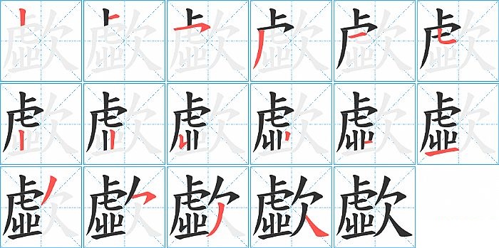 歔是左右结构,歔的部首是“欠”,部外笔画11画,总笔画15画,歔的笔画顺序是“竖、横、横撇/横钩、撇、横、竖弯钩、竖、竖、点、撇、提、撇、横撇/横钩、撇、捺”。看看“歔”字什么意思 >>