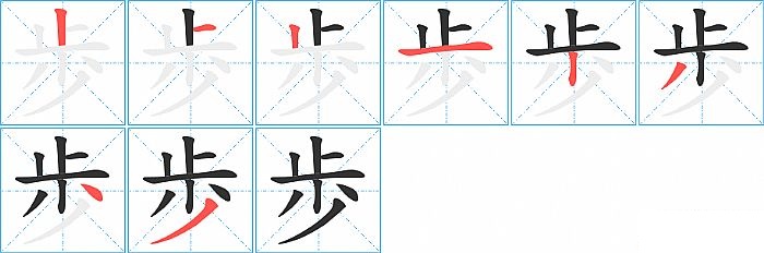 《歩》字的笔顺分步演示图(一笔一画写汉字)