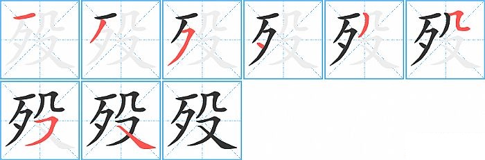殁是左右结构,殁的部首是“歹”,部外笔画4画,总笔画8画,殁的笔画顺序是“横、撇、横撇/横钩、点、撇、横折折/横折弯、横撇/横钩、捺”。看看“殁”字什么意思 >>