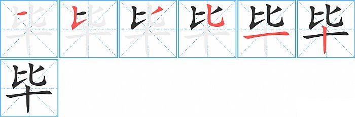 《毕》字的笔顺分步演示图(一笔一画写汉字)
