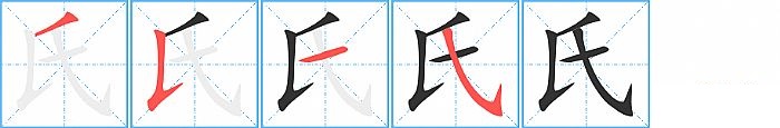 《氏》字的笔顺分步演示图(一笔一画写汉字)