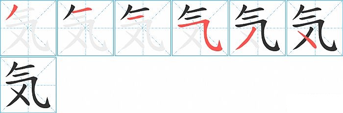 《気》字的笔顺分步演示图(一笔一画写汉字)
