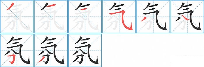 氛是半包围结构,氛的部首是“气”,部外笔画4画,总笔画8画,氛的笔画顺序是“撇、横、横、横折弯钩/横斜钩、撇、捺、横折钩、撇”。看看“氛”字什么意思 >>