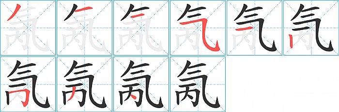 氞是右上包围结构,氞的部首是“气”,部外笔画5画,总笔画9画,氞的笔画顺序是“撇、横、横、横折弯钩/横斜钩、横、竖、横折钩、撇、点”。看看“氞”字什么意思 >>