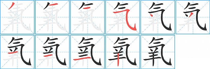 氧是半包围结构,氧的部首是“气”,部外笔画6画,总笔画10画,氧的笔画顺序是“撇、横、横、横折弯钩/横斜钩、点、撇、横、横、横、竖”。看看“氧”字什么意思 >>