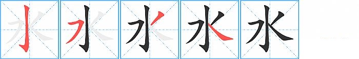 《水》字的笔顺分步演示图(一笔一画写汉字)