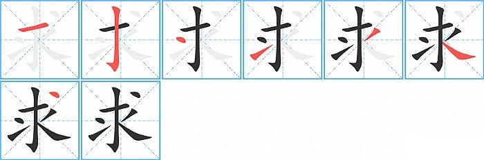 《求》字的笔顺分步演示图(一笔一画写汉字)